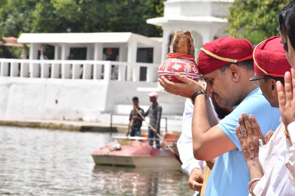 प्रारंभ में प्रभारी मंत्री श्री मीणा ने दूधतलाई के किनारे स्थित उद्यान परिसर से विधिवत् पूजन कर कलश यात्रा को रवाना किया। बड़ी संख्या में महिलाएं सिर पर कलश धारण कर परंपरागत भजन व लोक गीत गाते हुए चल रही थी। प्रभारी मंत्री सहित सभी अतिथि भी कलश यात्रा में शामिल हुए। कलश यात्रा दूध तलाई स्थित मुख्य छतरी के पास घाट पर पहुंची।