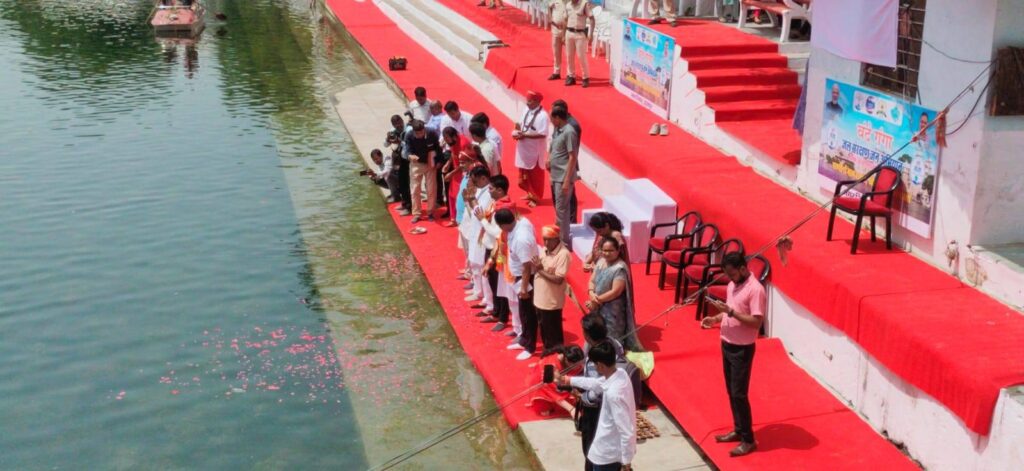 उदयपुर, 5 जून 2025 । जल एवं पर्यावरण का संरक्षण करते हुए जल आत्मनिर्भर और हरा भरा राजस्थान बनाने और आमजन को जल संचय के प्रति जागरूक करने के उद्देश्य से मुख्यमंत्री श्री भजनलाल शर्मा की पहल पर गुरूवार को गंगा दशमी और विश्व पर्यावरण दिवस के अवसर पर वंदे गंगा जल संरक्षण जन अभियान का जिले भर में उत्सवी अंदाज में आगाज हुआ।