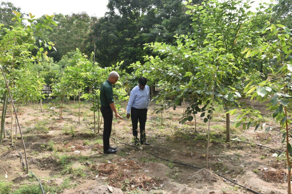 સાબરકાંઠા જિલ્લામાં વિશ્વ પર્યાવરણ દિવસે ઇન્ચાર્જ જિલ્લા કલેક્ટરશ્રી હર્ષદ વોરાએ ખેડબ્રહ્મા પ્રાંત કચેરી ખાતેના મિયાવાકી પદ્ધતિથી નિર્માણ કરેલા વન કવચની મુલાકાત લીધી હતી.ભારતમાં પર્યાવરણ સંરક્ષણ અને નેટ-ઝીરો કાર્બન ઉત્સર્જનના લક્ષ્યાંકો પરિપૂર્ણ કરવા માટે સ્થાનિક સ્તરે જાપાનીઝ મિયાવાકી પદ્ધતિને પ્રોત્સાહન આપ્યું છે. જેનો ઉદ્દેશ ઓછી જમીનમાં ઝડપથી સઘન વનરાજી ઊભી કરવાનો છે. રાજ્ય સરકારે રાજ્યમાં ઝડપથી વૃક્ષો ઉગાડવા માટે વન કવચ બનાવવાનું બીડું ઝડપ્યું છે. ગુજરાતમાં મિયાવાકી પદ્ધતિથી વન કવચ ઊભા કરવાની પહેલ પર્યાવરણ સંરક્ષણમાં મહત્વની ભૂમિકા ભજવી રહી છે.